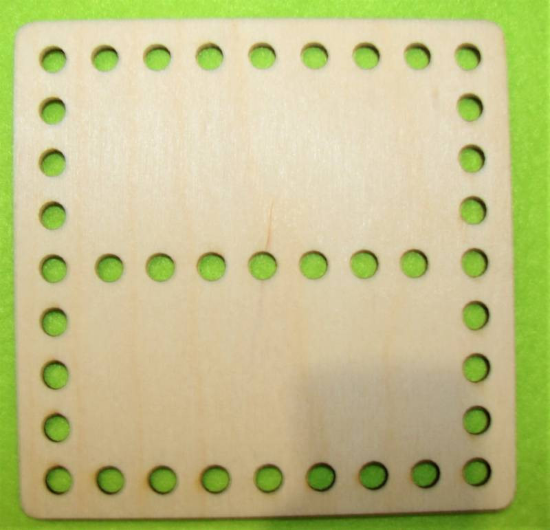 11x11 cm Baza din lemn natur crosetabil un patrat impartit in doua. Cu gaura de 6mm, 1 bucata, drosime 3mm