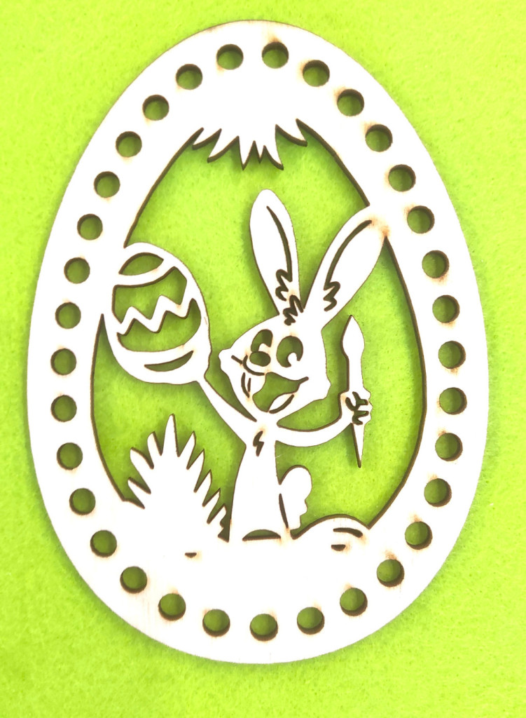 11x15c Ou croșetabil din lemn natural, brodat, pictat cu ouă, iepuraș. Cu gaura de 6mm, 1 bucata, grosime 3mm