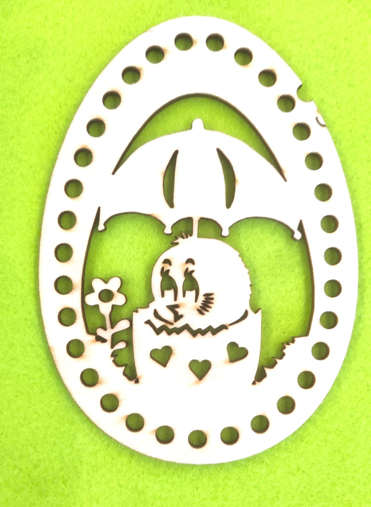 11x15cm Baza din lemn natural crosetabil in forma de puisor cu umbrela. Cu gaura de 6mm, 1 bucata