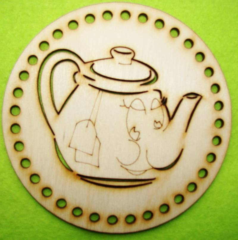 12,5cm Baza din lemn natur crosetabil in forma de suport de ceasca de ceai. 1 bucata, grosime 3mm