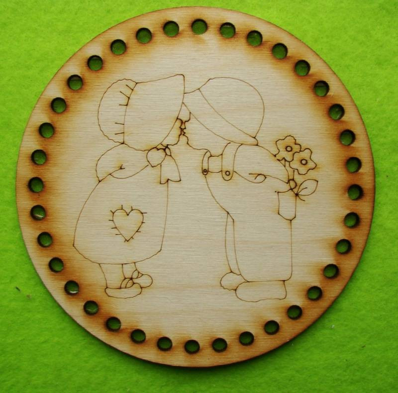 12,5cm Bază din lemn natural crosetabilă in forma de cerc fete si baieti,cu gaura de 5mm, 1 bucata, grosime 3mm
