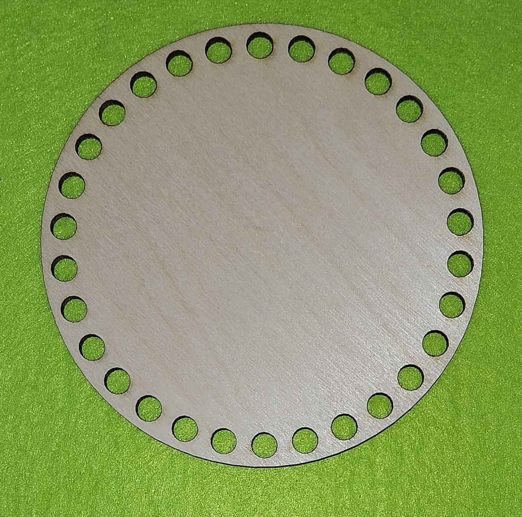 12 cm Baza din lemn natural rotund crosetabil. Cu gaura de 7 mm, 1 bucata, grosime 3mm