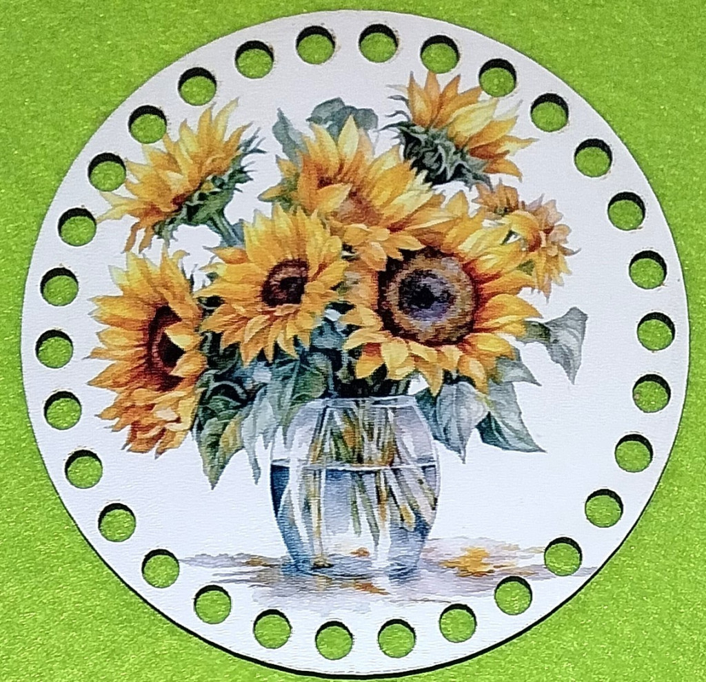 12cm Baza din lemn imprimata crosetabila cu gaura de 7 mm Floarea-soarelui în vaza 1 buc/pachet 12 cm grosime 2,5 mm