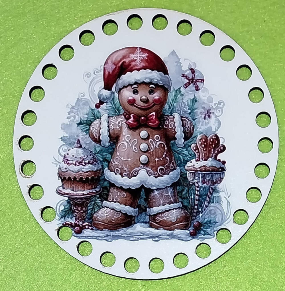 12cm Baza din lemn imprimata, crosetabila, cu gaura de 7 mm, Honey boy. 1 bucata, grosime 2,5mm.