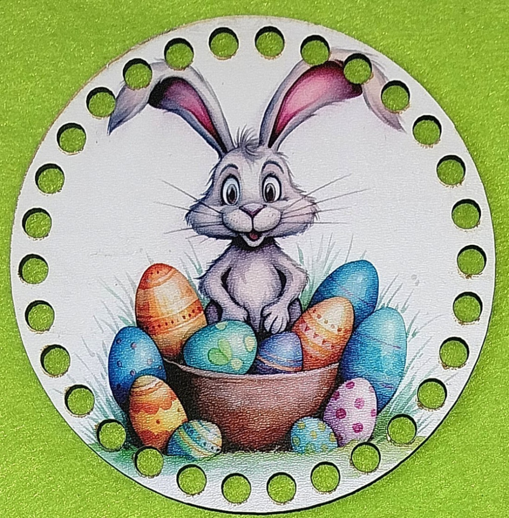 12cm Baza din lemn imprimata crosetabila cu gaura de 7 mm Ou de iepuras cu cosuleț 1 buc/pachet 12 cm grosime 2,5 mm