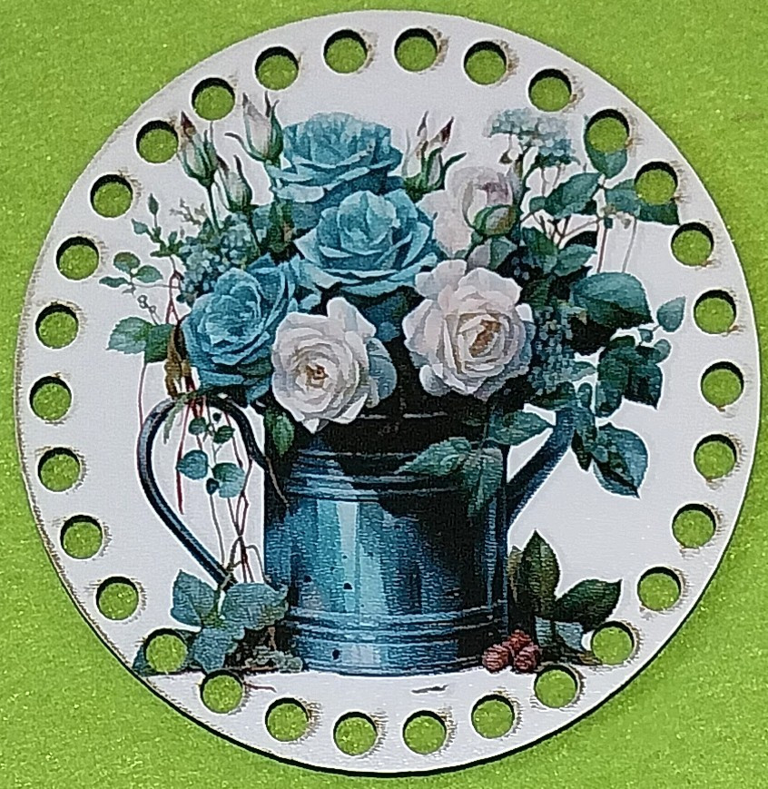 12cm Baza din lemn imprimata crosetabila cu gaura de 7 mm Stropitoare cu trandafiri albi si albastri 1 buc/pachet 12 cm grosime 2,5 mm
