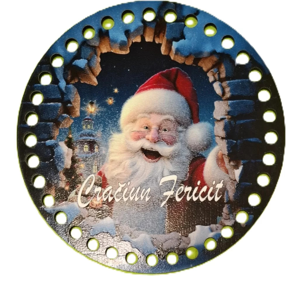 15cm Baza din lemn crosetabil Ciocantoare medie cu inscriptia Mos Craciun Craciun Fericit. Cu gaura de 7mm, 1bucata, grosime 2,5mm.