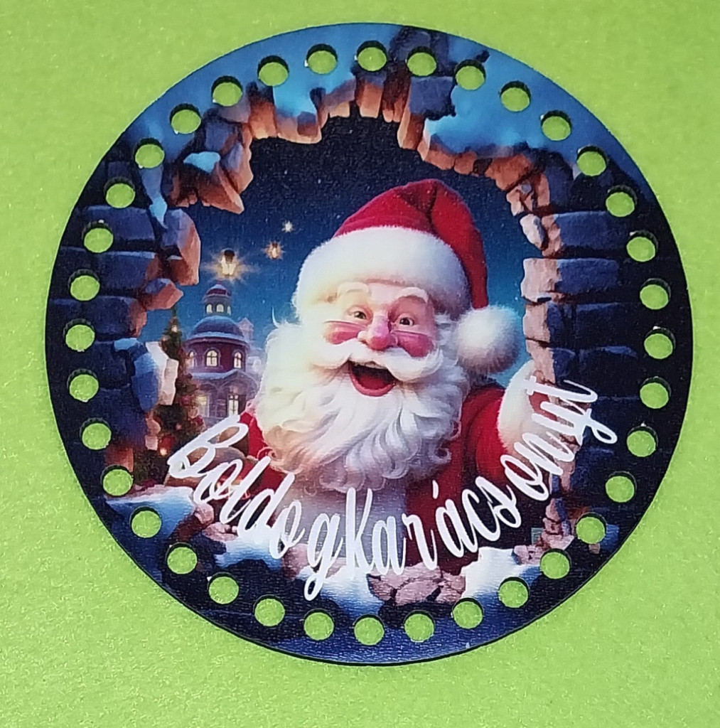 15cm Baza din lemn crosetabil Ciocantoare medie cu inscriptia Mos Craciun Boldog Karácsonyt Cu gaura de 7mm, 1bucata, grosime 2,5mm.