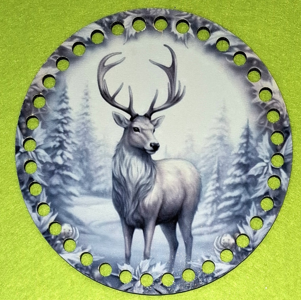 15cm Baza din lemn imprimată crosetabil Cerb alb într-un peisaj inzapezit cu gaura de 7 mm 1 buc. 15 cm grosime 2,5 mm