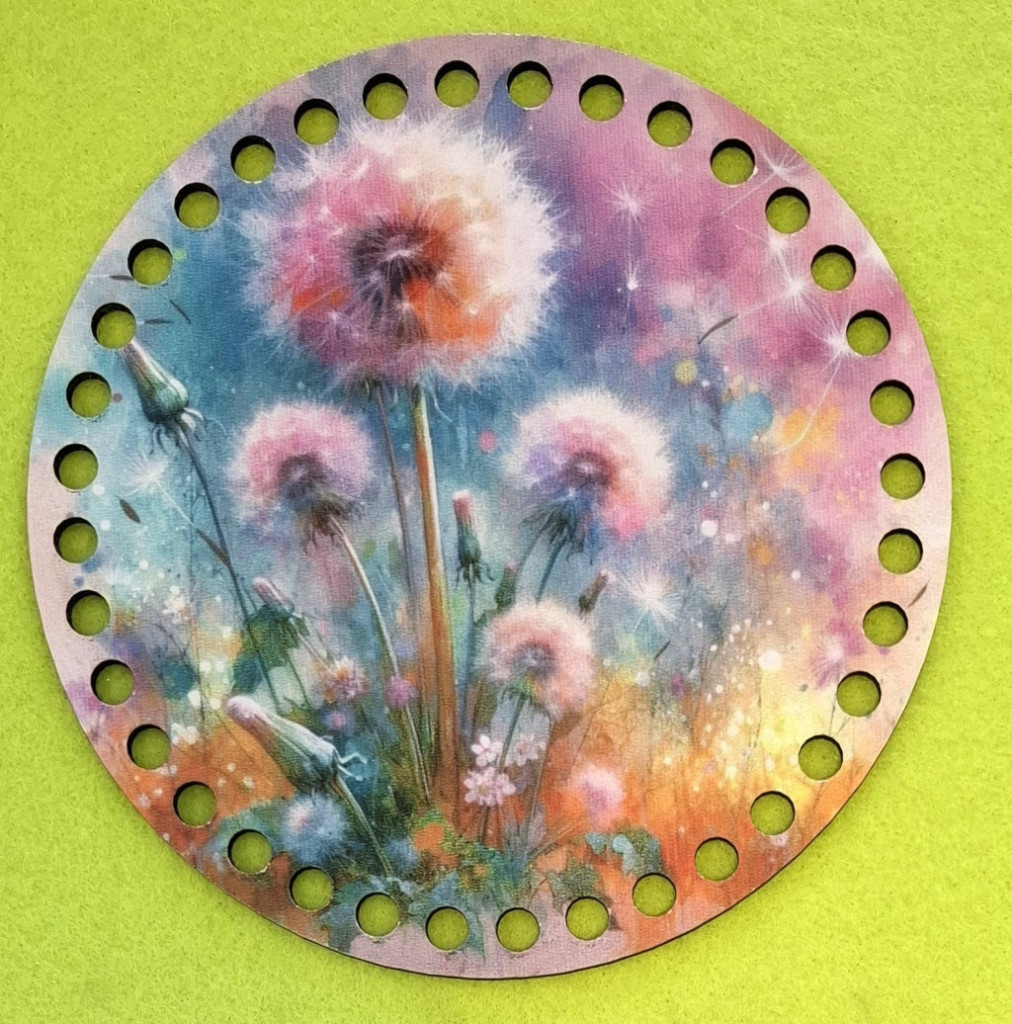15cm Baza din lemn imprimata crosetabil Papadie cu gaura de 7 mm 1 buc. 15 cm grosime 2,5 mm