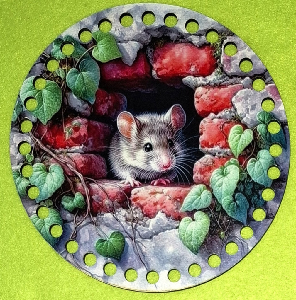 15cm Baza din lemn imprimata crosetabil Soarece iesind din perete cu gaura de 7 mm 1 buc. 15 cm grosime 2,5 mm
