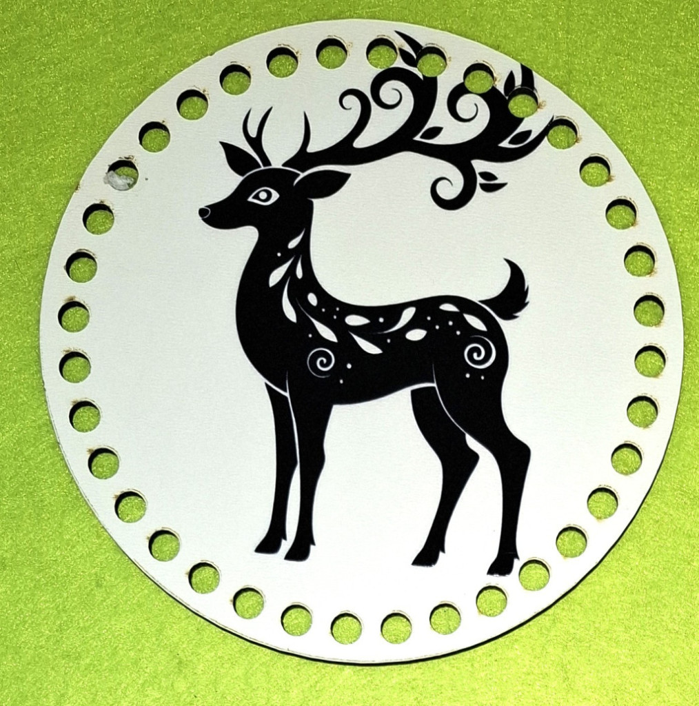 15cm Baza din lemn imprimata crosetabil, cerb minunat, cu gaura de 7 mm, 1 buc., 15 cm, grosime 2,5 mm