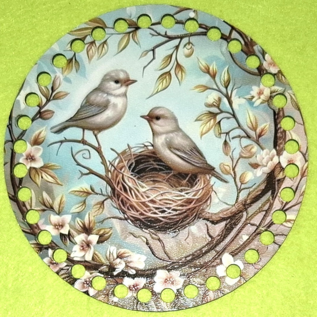 15cm Baza din lemn imprimata crosetabil cu gaura de 7 mm Cuplu de pasari cu cuib 1 buc. 15 cm grosime 2,5 mm