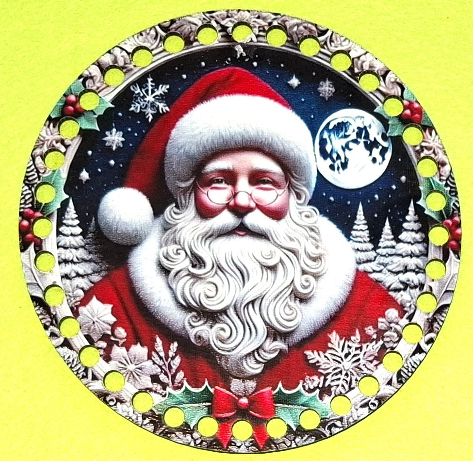 15cm Baza din lemn imprimata crosetabil cu gaura de 7 mm Moș Crăciun 1 buc. 15 cm grosime 2,5 mm