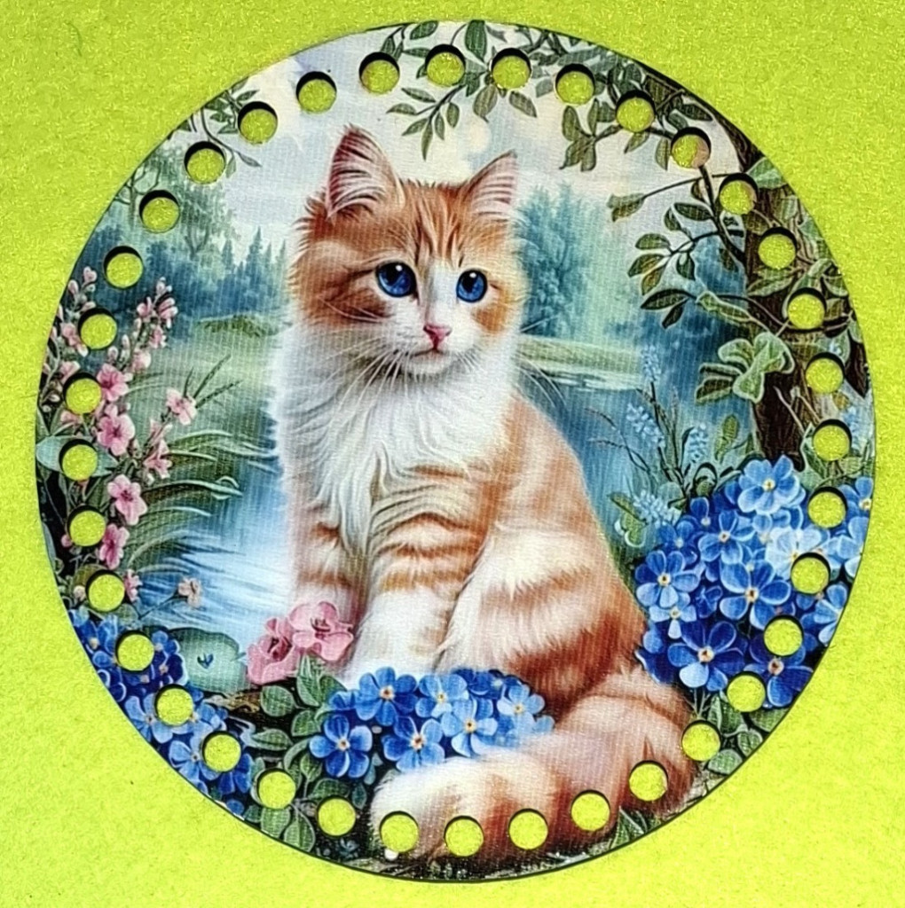 15cm Baza din lemn imprimata crosetabil cu gaura de 7 mm Pisicuta rosie 1 buc. 15 cm grosime 2,5 mm