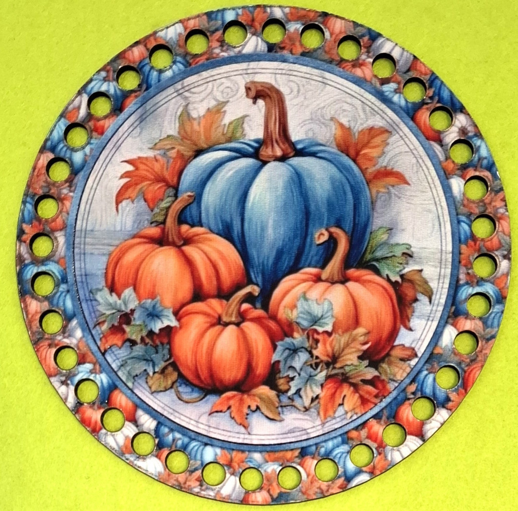 15cm Baza din lemn imprimata crosetabila Dovleac albastru si portocaliu cu gaura de 7 mm 1 buc 15 cm grosime 2,5 mm