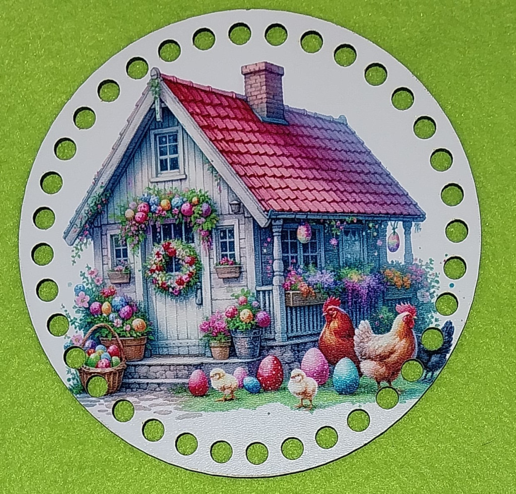 15cm Baza din lemn imprimata crosetabila cu gaura de 7 mm Casuta alba cu puisori. 1 bucata/pachet, grosime 2,5mm