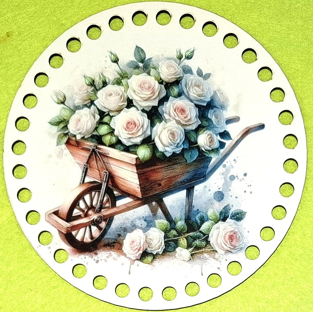 15cm Baza din lemn imprimata crosetabila cu gaura de 7 mm Trandafir alb în roaba 1 buc 15 cm grosime 2,5 mm
