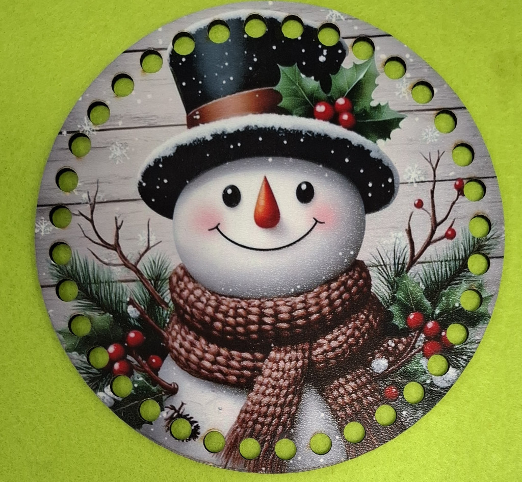 15cm Fundal crosetabil cu model de om de zapada, cu baza din lemn imprimat, gaura de 7 mm, 1 buc., 15 cm, grosime 2,5