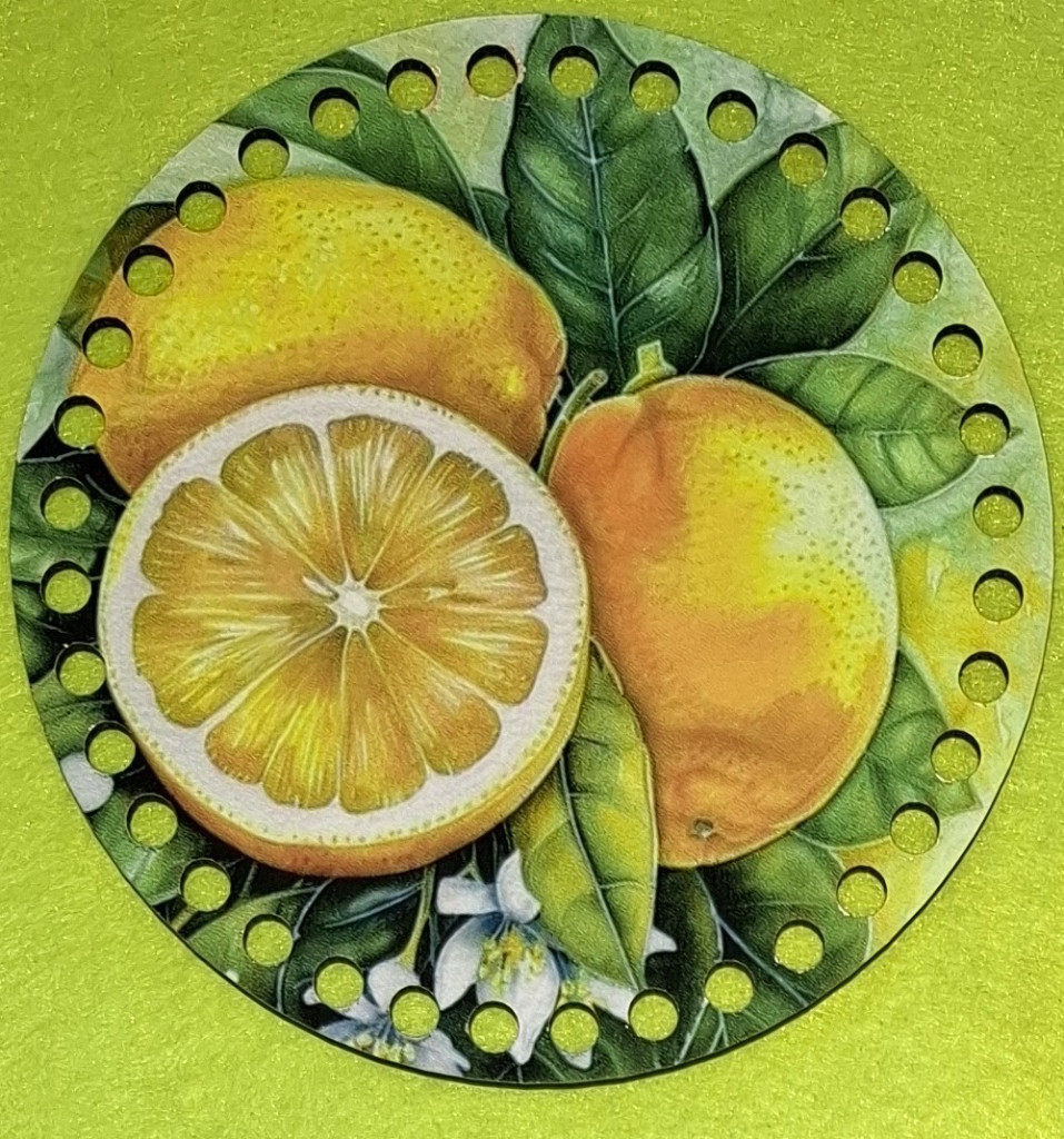 15cm Set croșetat cu baza din lemn imprimata, lamaie, gaura de 7 mm, 1 buc., 15 cm, grosime 2,5 mm