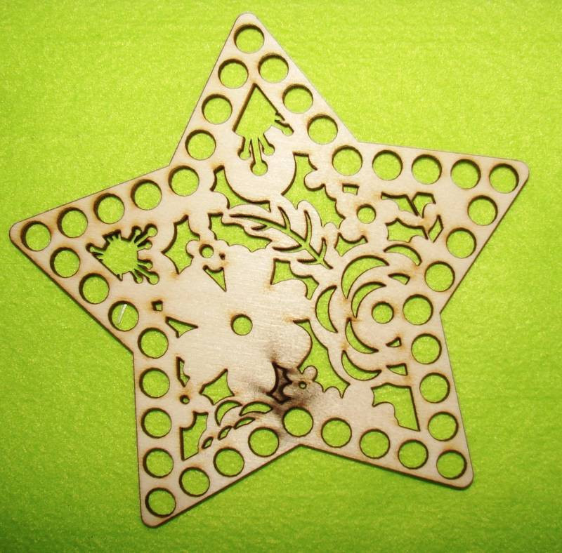 15x14cm Stea crosetabila din lemn natural cu motive florale, gaura de 8 mm, grosime 1 buc. 3 mm