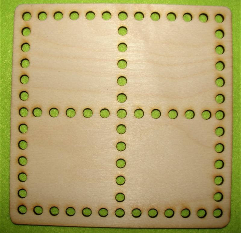 15x15cm Patrat din lemn natural, crosetabil,impartit în patru partii cu gauri de 6 mm, grosime 3 mm