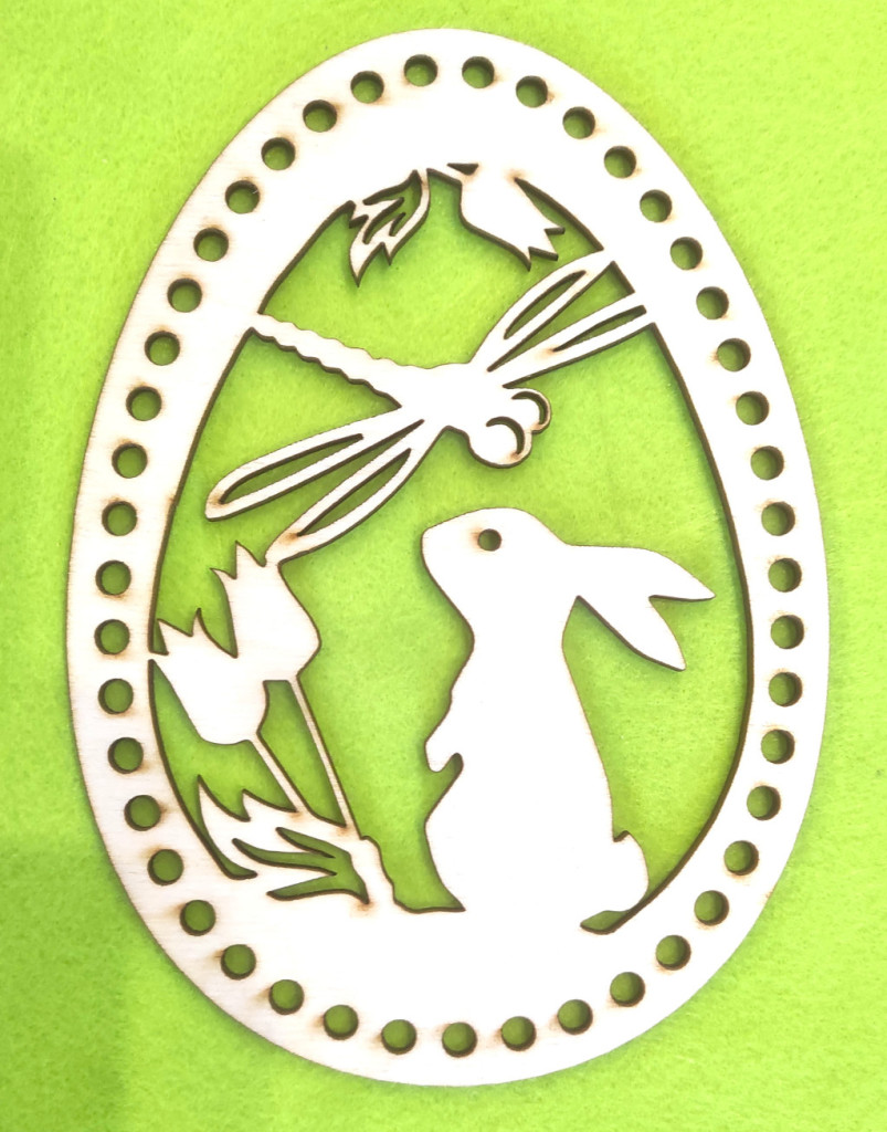 15x21cm Iepuras cu ou crosetabil din lemn natural cu libelula, gaura 6mm, 1 buc., grosime 3mm