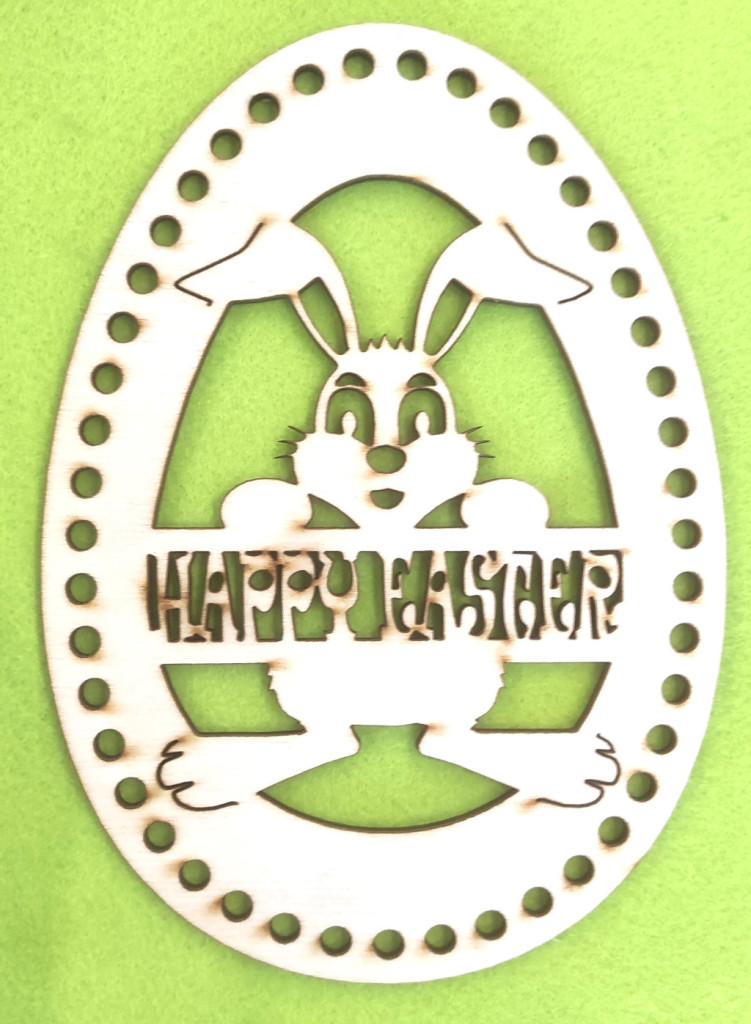15x21cm Iepuras cu ou crosetabil din lemn natural cu tabla Paște Fericit, gaura de 6 mm, 1 buc., grosime 3 mm