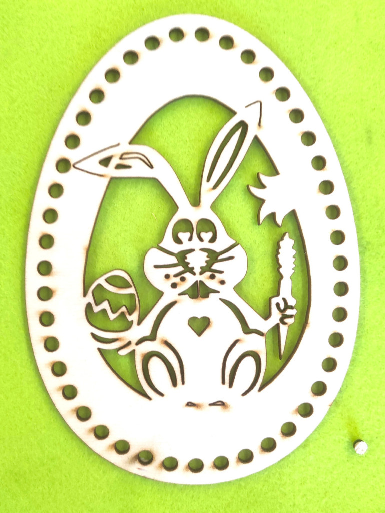 15x21cm Iepuras ou crosetabil din lemn natural cu morcov si ou brodat, gaura de 6 mm, grosime 1 buc. 3 mm