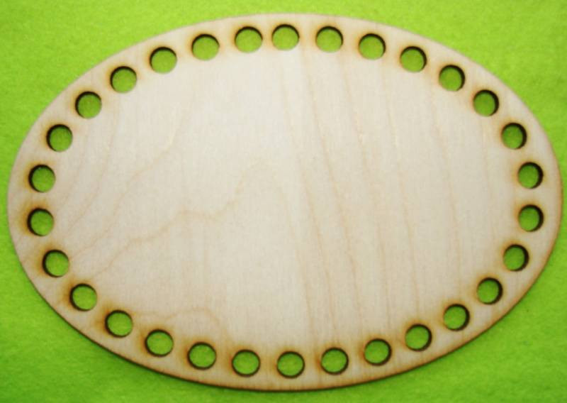 16,5x11cm Placa ovala din lemn natural crosetabila, 1 buc., grosime 3 mm, dimensiune gaura: 7,5 mm