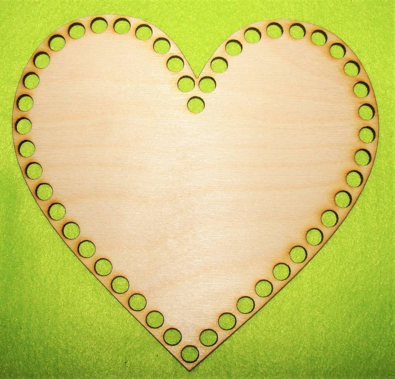 18x17cm Inima din lemn natural cu gaura mare de 8 mm, 1 buc. grosime 3 mm