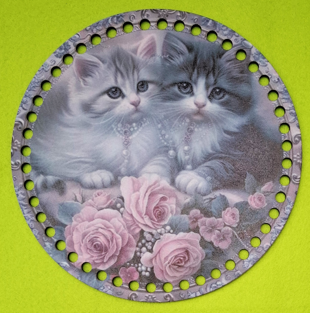 19,5cm Baza din lemn imprimata crosetabil cu gaura de 7 mm Pisicute dragute 1 buc. 19,5 cm grosime 2,5 mm