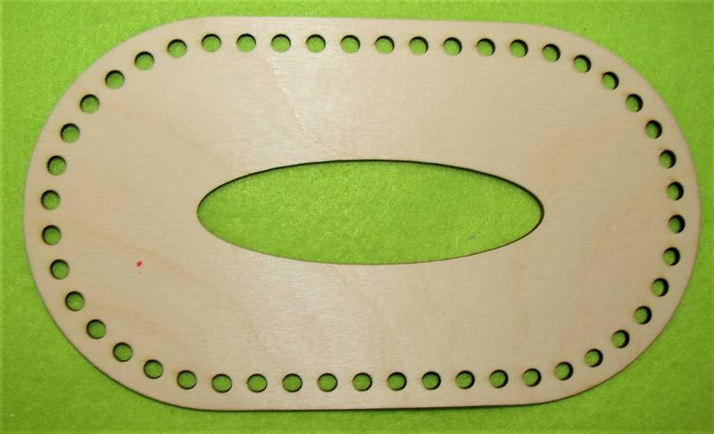22,5x12,5 cm Cutie ovala pentru servetele, din lemn natural, crosetabil, cu gaura de 6 mm, grosime 1 bucata de 3 mm.