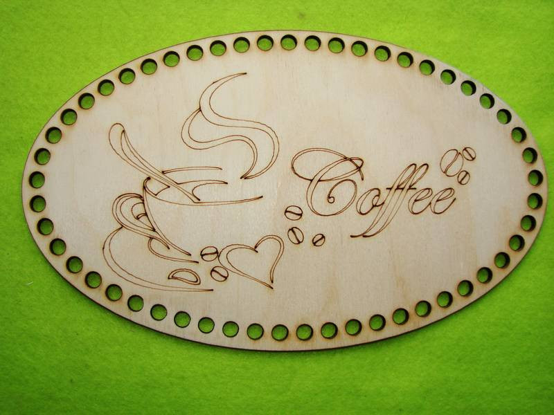 25x15cm Tava de cafea din lemn natural, crosetabila, baza din lemn cu gaura de 7 mm, 1 buc., grosime 4 mm