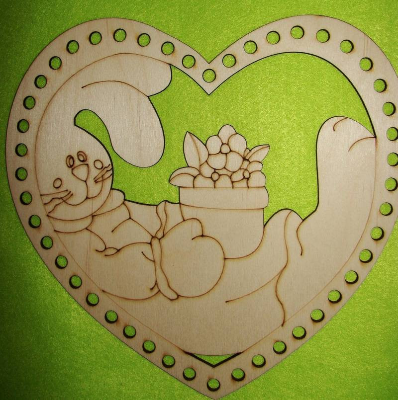 25x24cm Nicovala inima crosetabila din lemn natural cu floare de iepuras, gaura 7,5 mm, grosime 1 buc. 3 mm