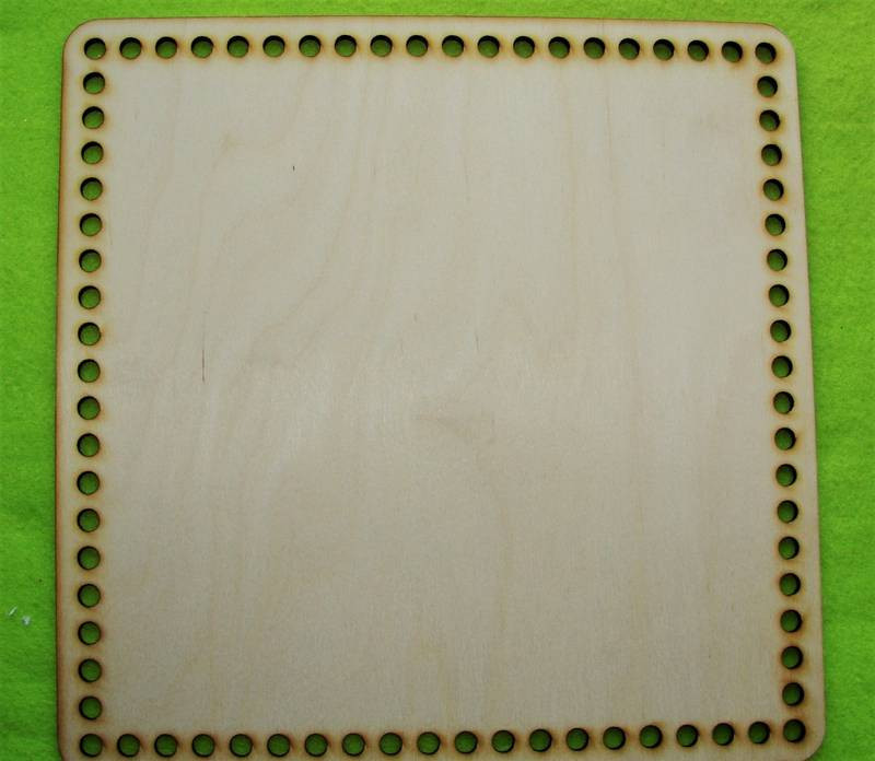 27,5x27,5cm Placa patrata din lemn natural crosetabila, 1 buc., grosime 3 mm, dimensiune gaura: 7,5 mm