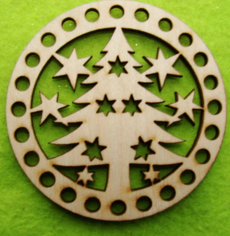 8cm Baza din lemn natural crosetabil, cu lemn de pin si stele, gaură de 5 mm, grosime 1 buc. 3 mm