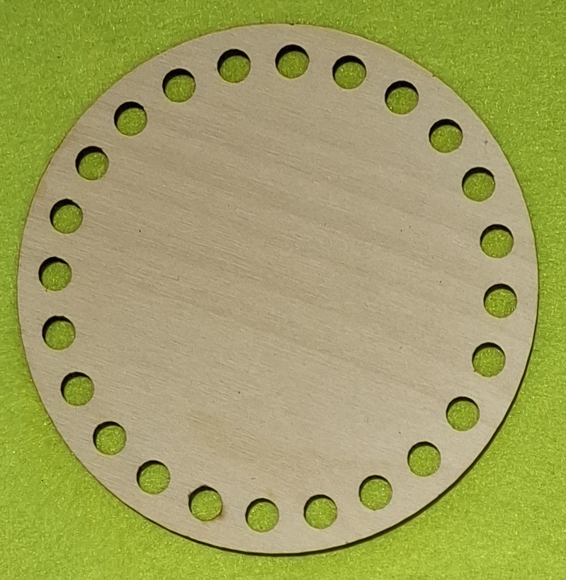 Baza circulara crosetabila din lemn natural 24 buc cu gaura de 7mm, 1 bucata de 11cm grosime 3mm