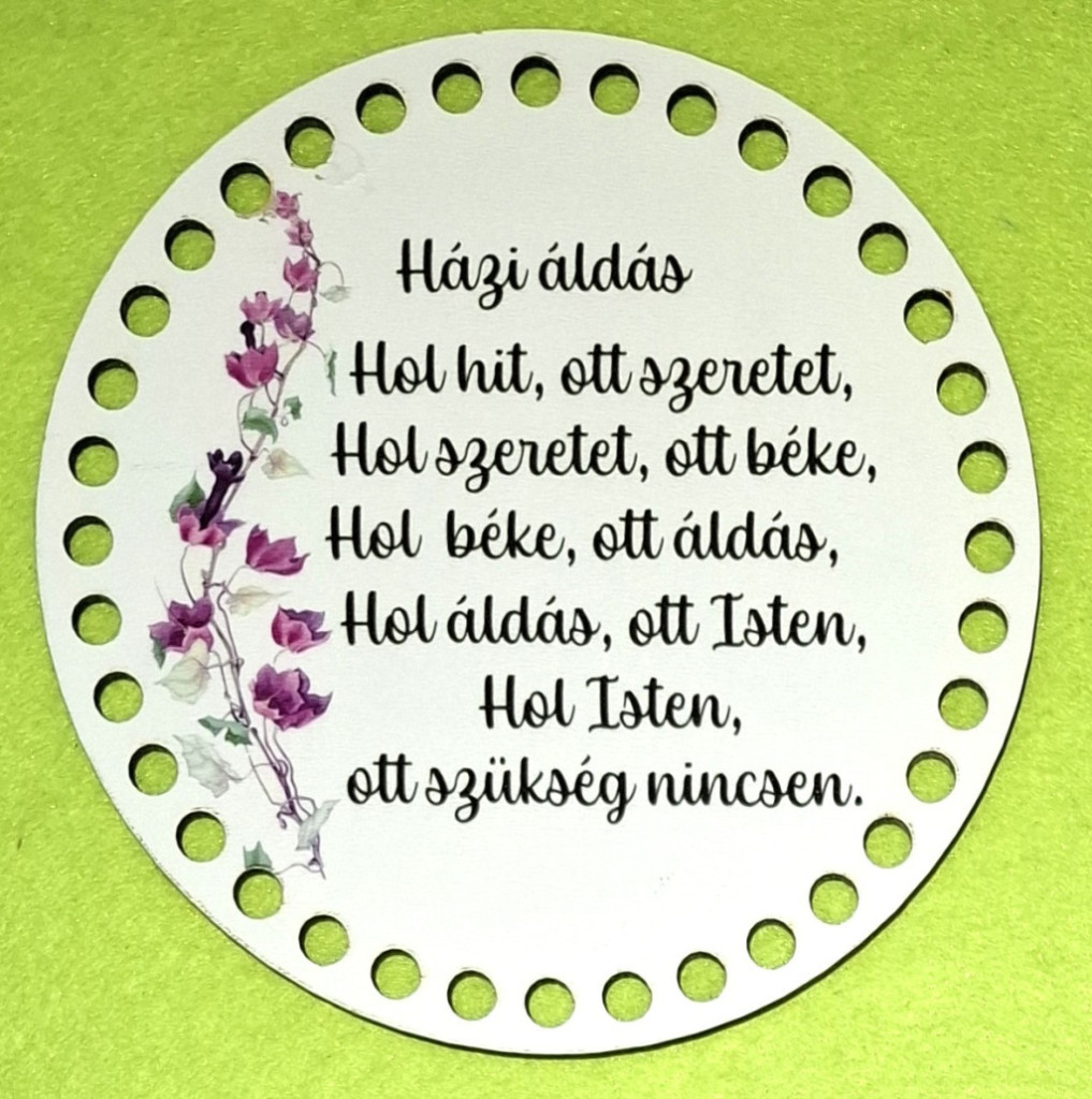 Baza din lemn imprimata crosetabila Házi áldás cu gaura de 7 mm 1 buc 15 cm grosime 2,5 mm