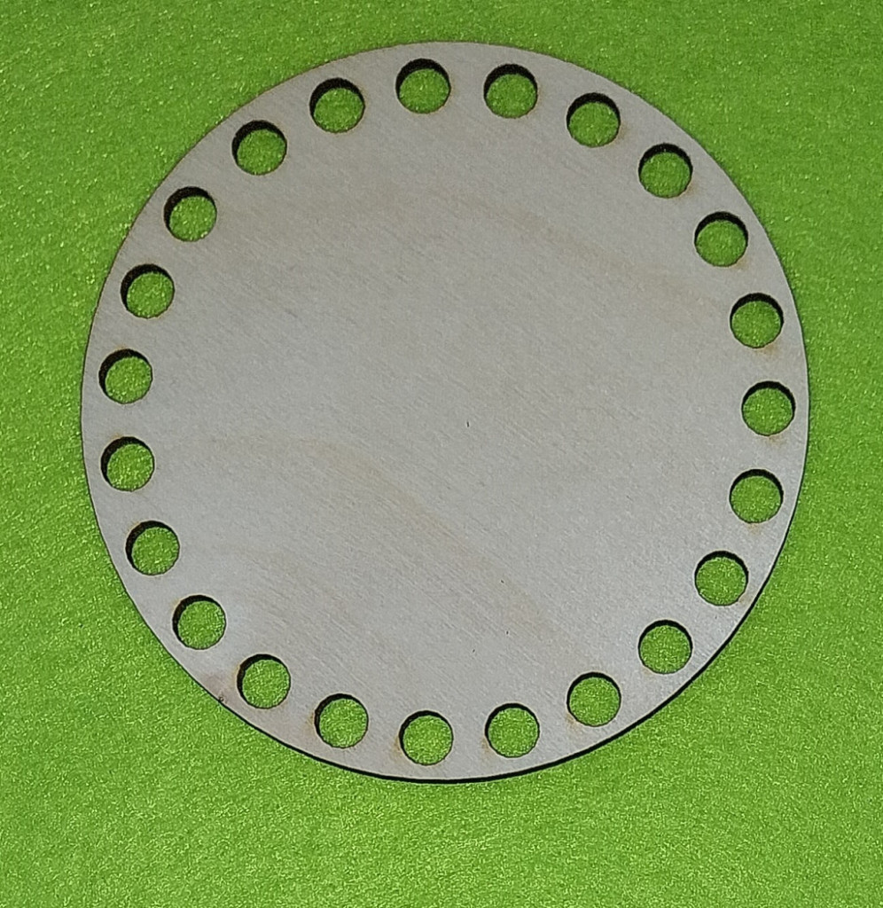 Baza din lemn natural crosetabil de 12cm rotund cu gaura de 7mm, 1 bucata, grosime de 3mm