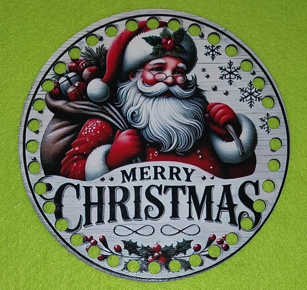 Ciocanel de usa din lemn, crosetabil, cu gaura de 7 mm in mijloc, cu Mos Crsciun si inscriptia Crăciun Fericit. 1 bucata 15cm, grosime 2,5mm.