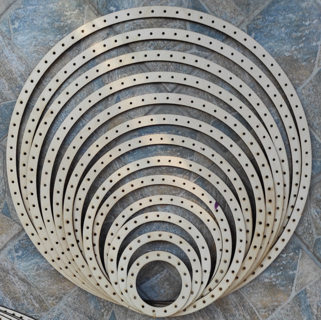 Set de baze ovale din lemn natural, crosetabile, cu gaura de 4 mm, 1 set, 12,5-16,5-24-28-31,5-35-39-43-47-50-54,5-58,5 cm, grosime 3 mm
