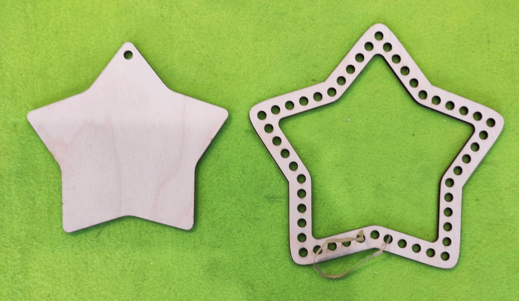 Stea crosetabila din lemn natural cu gaura + stea cu gaura de 7 mm 1 buc 20x19.5 cm + stea 15x16 grosime 3 mm