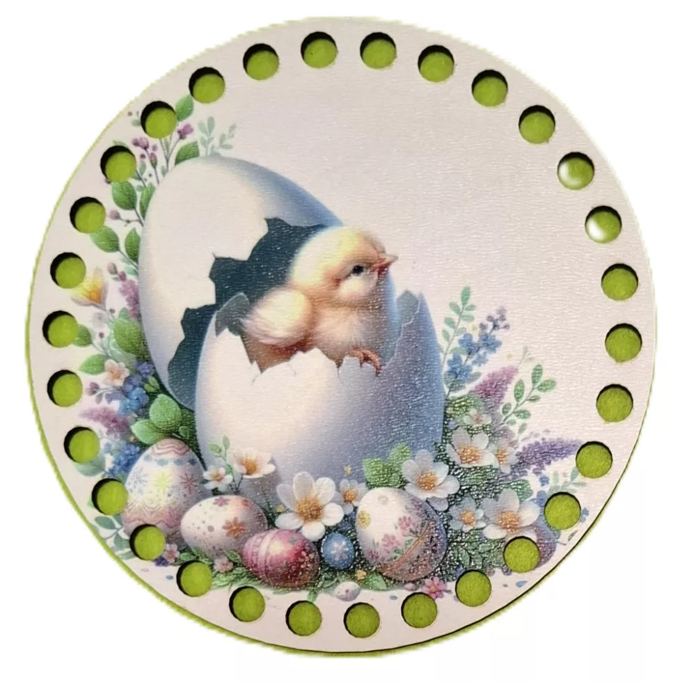 12cm Baza din lemn imprimata crosetabila cu gaura de 7 mm Puisor în coaja de ou cu inscriptie de 1 buc/pachet 12 cm grosime 2,5 mm