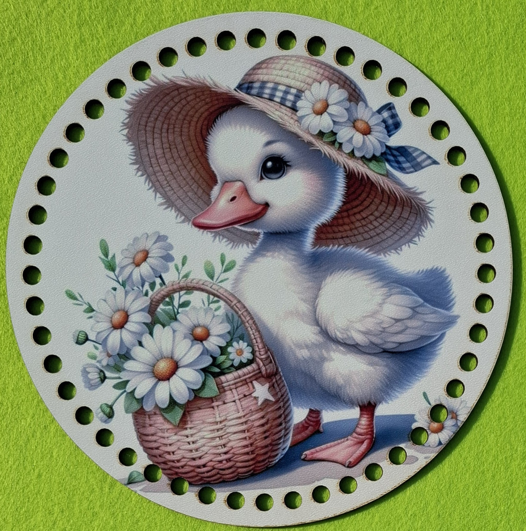 19,5cm Baza din lemn imprimata crosetabila cu gaura de 7 mm Rățușcă cu cos cu flori 1 buc. 19,5 cm grosime 2,5 mm Elemente suplimentare la: HOA 316