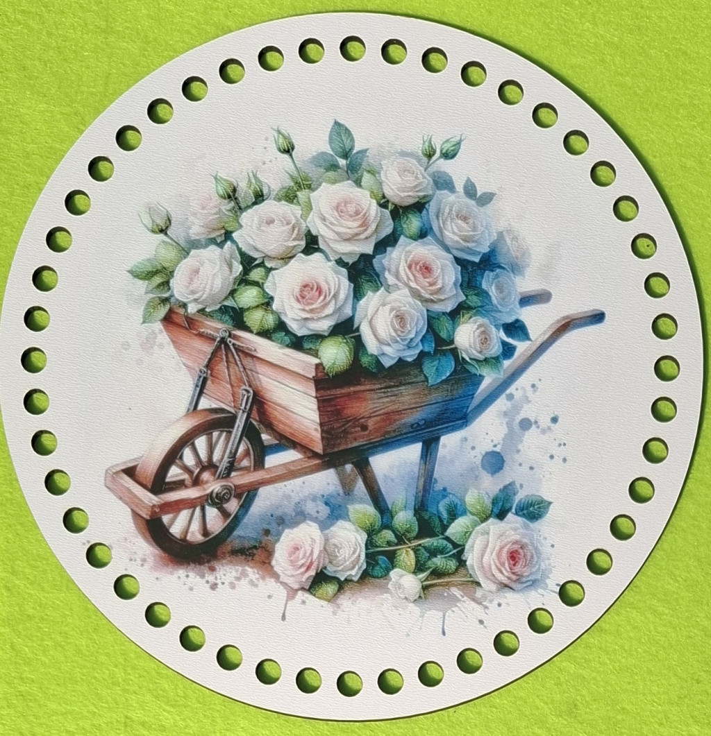19,5cm Baza din lemn imprimata crosetabila cu gaura de 7 mm Trandafir alb în roaba 1 buc 19,5 cm grosime 2,5 mm
