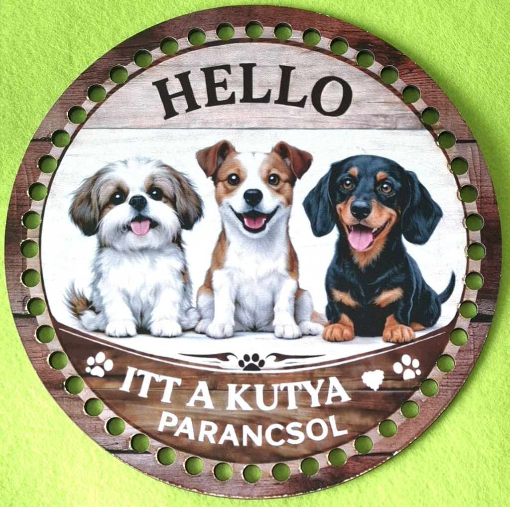 Bază din lemn imprimată pentru croșetat, 19,5 cm, cu găuri de 7 mm „Hello, aici câinele poruncește” 1 buc / pachet Diametru 19,5 cm, grosime 2,5 mm