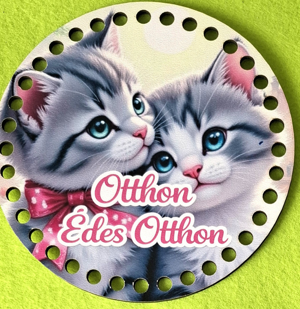 Bază din lemn imprimată pentru croșetat, 15 cm, cu găuri de 7 mm „Cuplu drăguț de pisici” cu inscripția „Acasă, dulce acasă” 1 buc / pachet Diametru 15 cm, grosime 2,5 mm