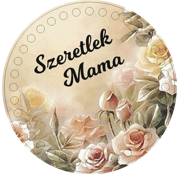Bază din lemn imprimată pentru croșetat, 15 cm, cu gaură de 7 mm, model cu trandafiri galbeni, cu inscripția „Te iubesc, mama” 1 buc/pachet 15 cm, grosime 2,5 mm